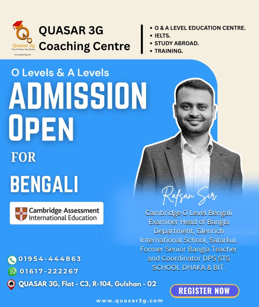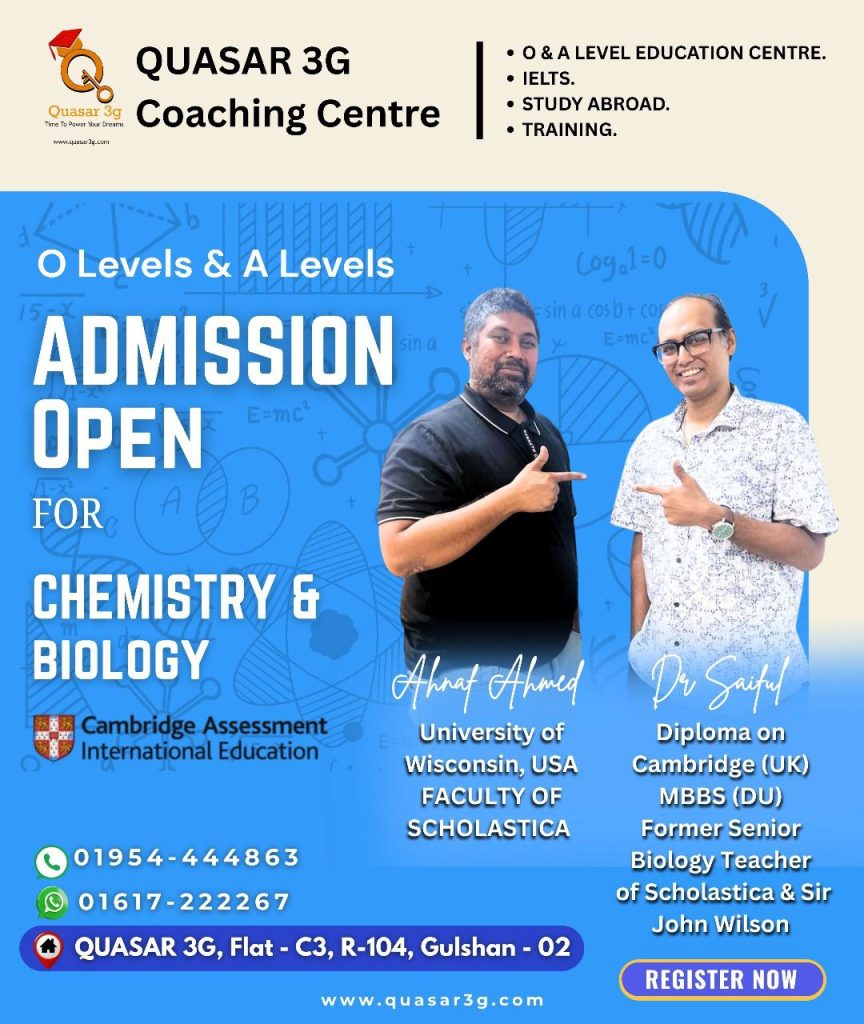 Quasar 3G Coaching Centre, is one of the best coaching centre and teaching centre for the students of British Curricula such as Edexcel and Cambridge. It is a renowned English medium institute located at Gulshan 2